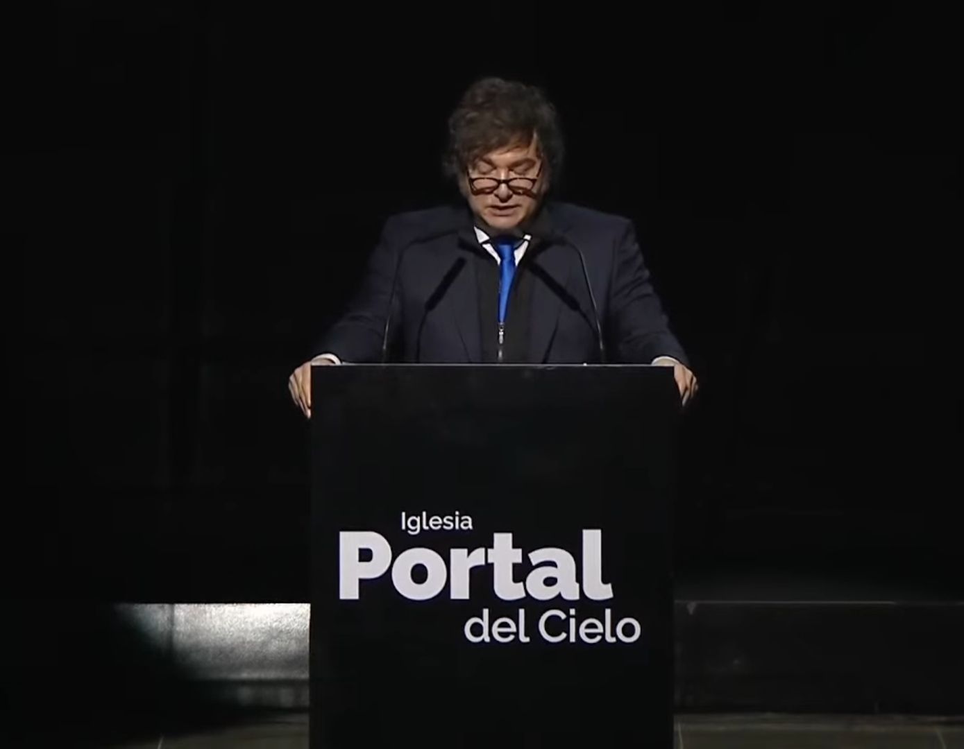 En un discurso con tono de campaña enfocado en pasajes bíblicos, Milei también cuestionó que “el Estado es la representación del maligno en la tierra”.