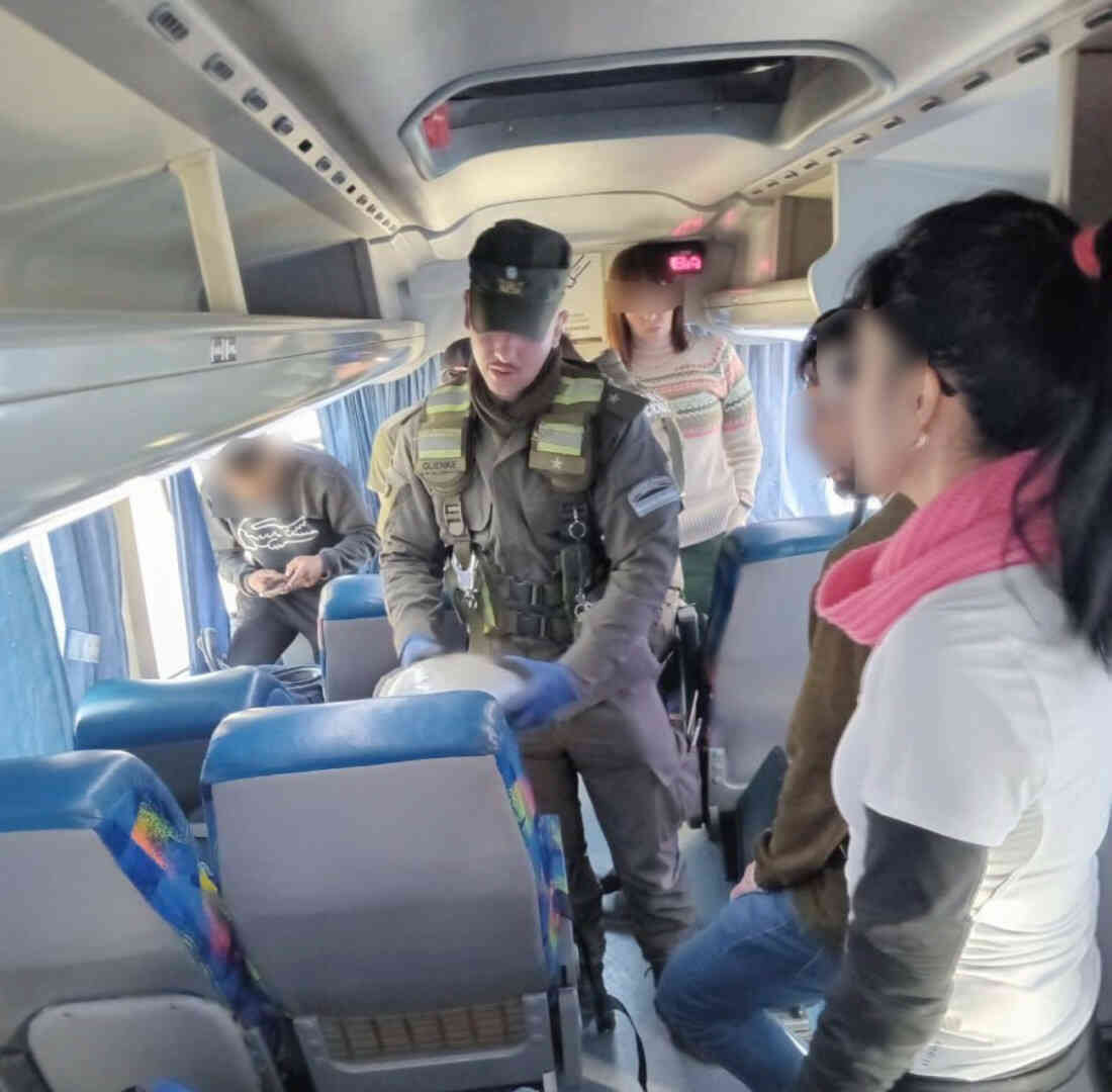 Luego de una inspección más minuciosa del transporte, los funcionarios encontraron más paquetes distribuidos en el portaequipaje y sobre otras butacas vacías.