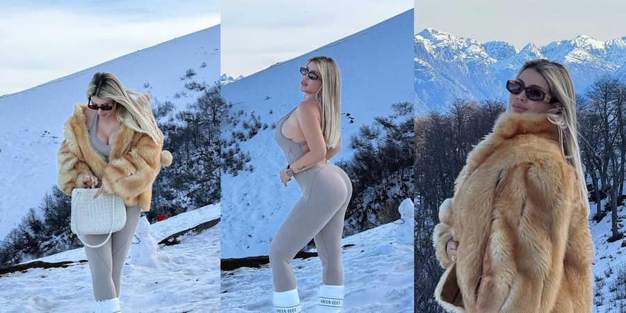 En otras imágenes, sumó un abrigo de piel sintética en tono camel y una cartera tejida clara, que como no podía ser de otra manera, está decorada con un Labubu. La elección del abrigo aportó un contraste visual con la nieve y el paisaje, reforzando la impronta de moda invernal en la producción. Wanda se mostró caminando por la pendiente, observando el paisaje y sonriendo, con detalles que remarcan el clima distendido y lujoso de la sesión.
