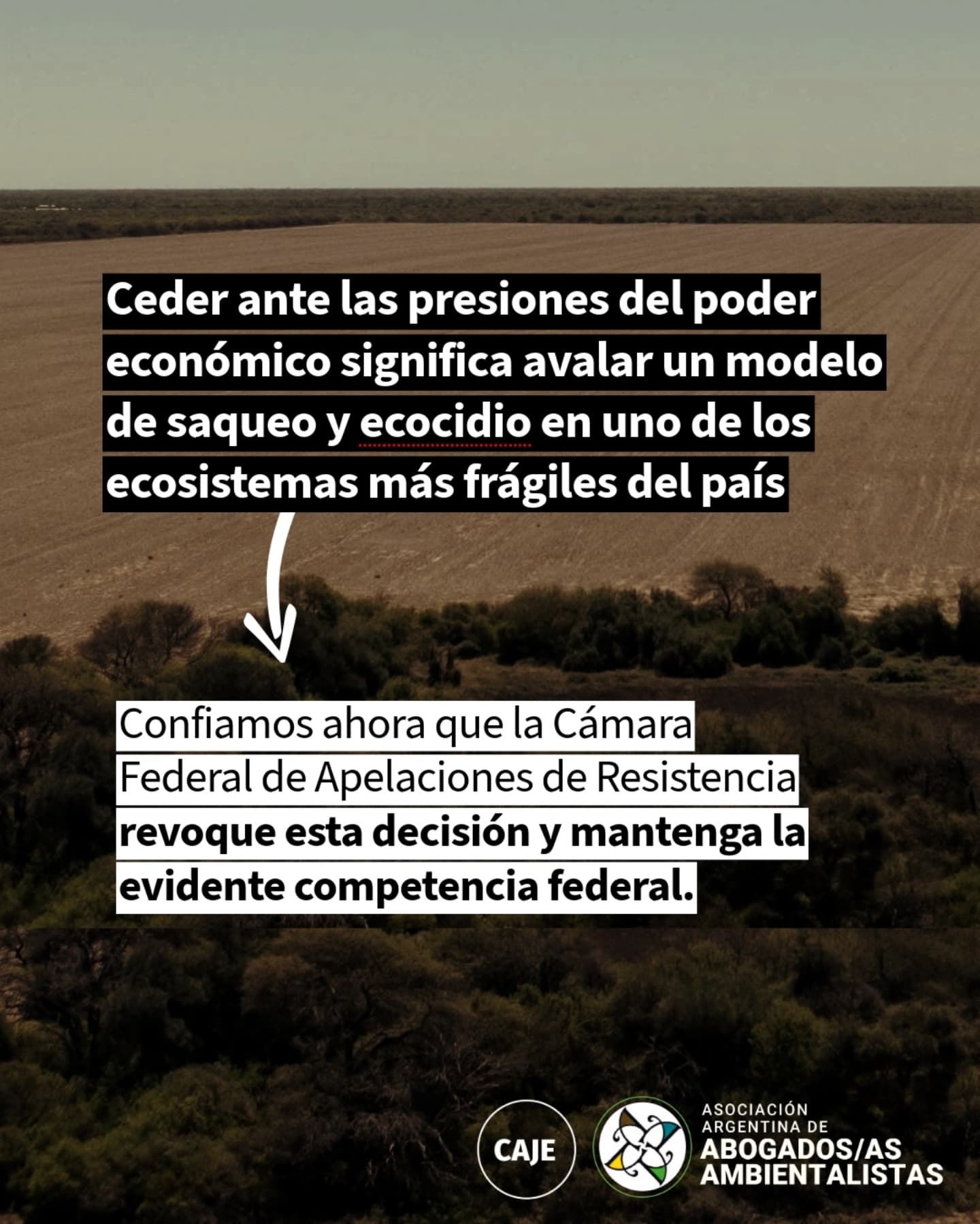 Según la AAdeAA, su denuncia “es la más importante de la historia alrededor del entramado político empresarial detrás de la destrucción del monte chaqueño y es por eso que sectores de poder económico y político buscan garantizar su impunidad presionando al Poder Judicial”.