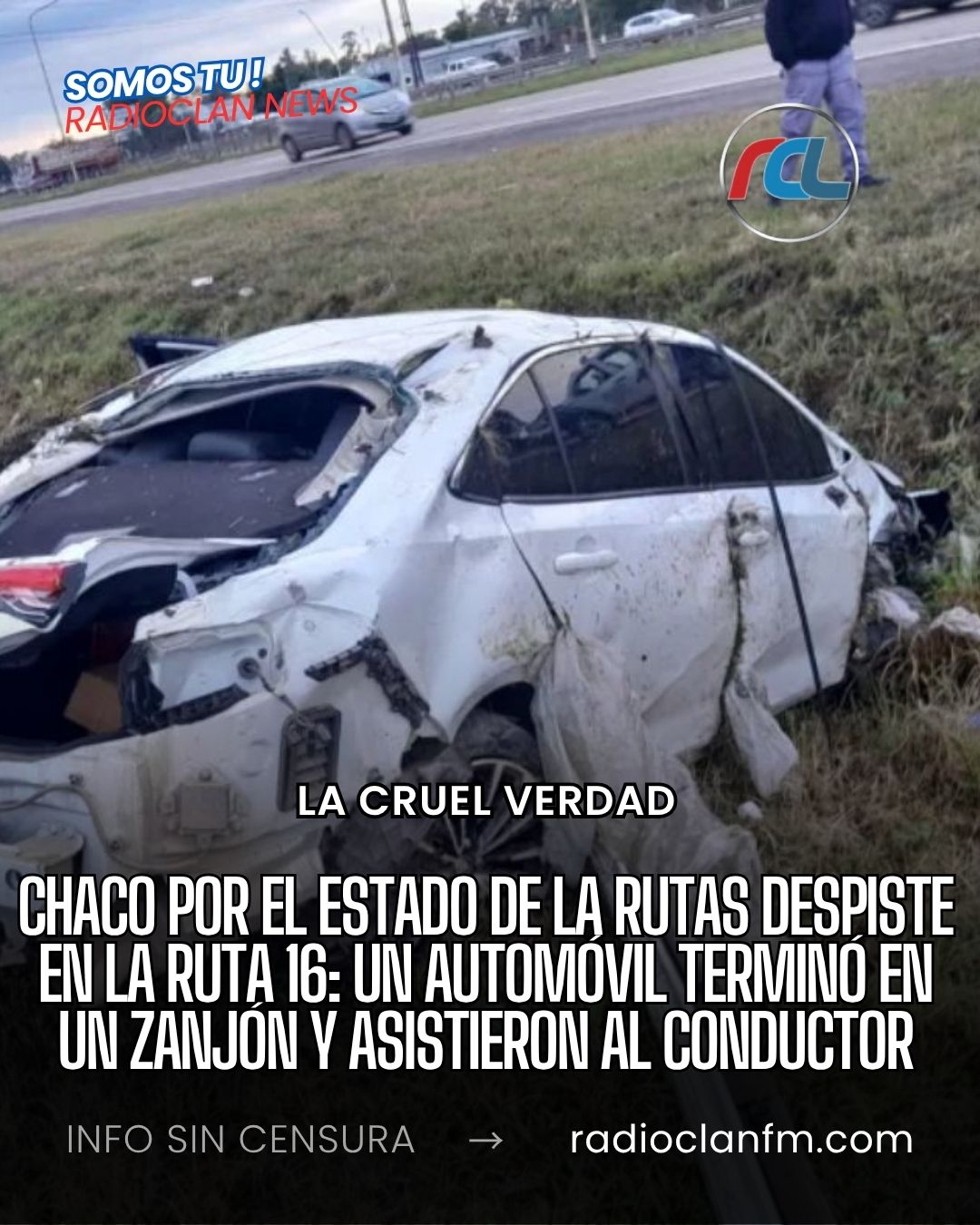 Un sinestro de tránsito se registró este jueves por la mañana en la ruta nacional 16, a la altura del kilómetro 16, donde un automóvil Toyota Corolla blanco, se despistó y terminó incrustado en un zanjón a la vera de la ruta. Según se informó desde la Policía del Chaco, el conductor de 39 años, manifestó que perdió el control del rodado por motivos que desconoce.