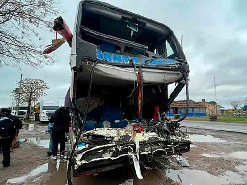 Según los peritajes preliminares, el camión habría colisionado contra la parte trasera del colectivo, que terminó desplazado más de 500 metros fuera de la calzada. Se investiga si el chofer del camión se durmió al volante.