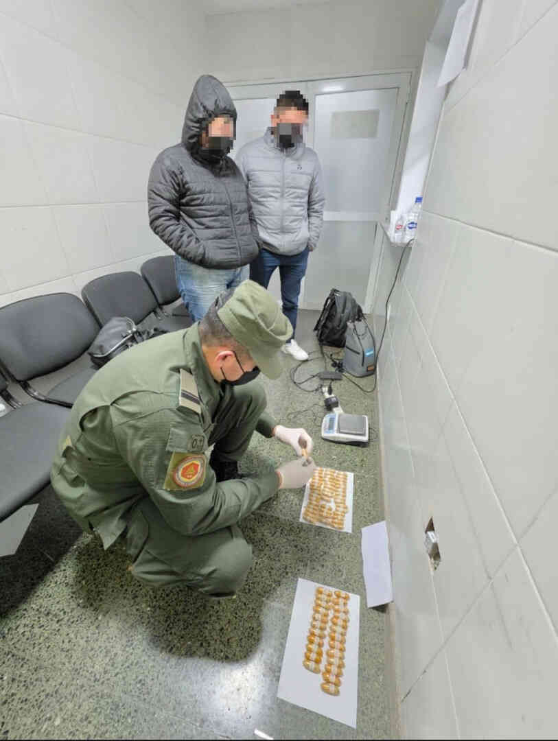 Ayer, en horas de la noche, ambos involucrados finalizaron la evacuación de un total de 197 capsulas con cocaína, arrojando un peso total de 2 kilos 244 gramos. Ambos quedaron detenidos.