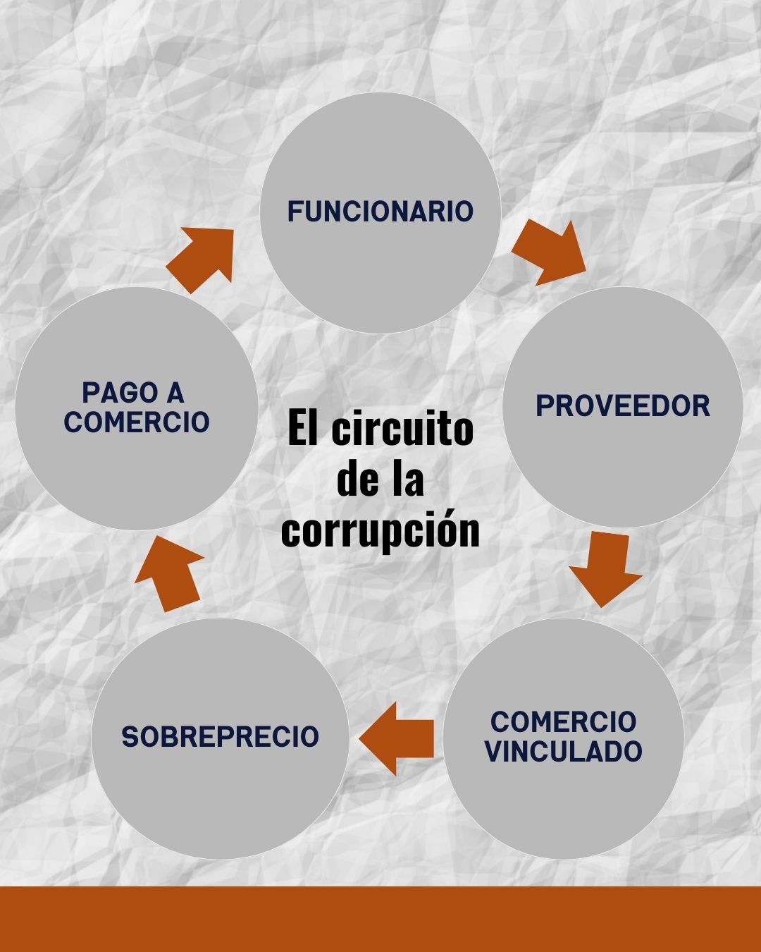 -Y ahora, la obligación impuesta a empresas para comprar en comercios específicos, a precios inflados, que en algunos casos pertenecen a los mismos funcionarios que autorizan los pagos.