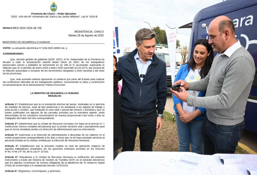 En una medida que profundiza el conflicto con los trabajadores estatales, el gobierno de Leandro Zdero, a través del Ministerio de Desarrollo Humano que conduce Gabriela Galarza, resolvió aplicar descuentos por días de paro a los agentes que adhieran a medidas de fuerza.
