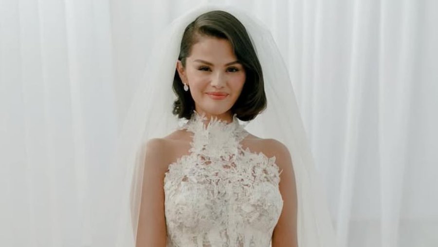 Selena Gómez usó un vestido de novia con 300 flores de encaje aplicadas a mano. (Foto: Instagram/@selenagomez)