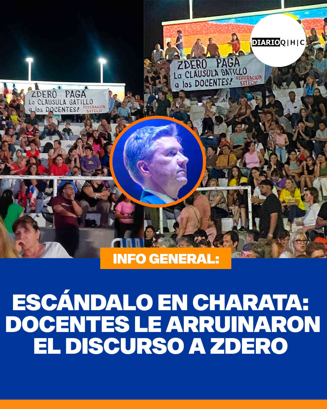 El cumpleaños de Charata terminó en un verdadero papelón para el gobernador Leandro Zdero. Mientras el mandatario intentaba dar un discurso por los 111 años de la ciudad, un grupo de docentes le marcó la cancha con un cartel que reclamaba el pago de la cláusula gatillo, mecanismo que el gobierno provincial decidió eliminar pese a la inflación galopante.
