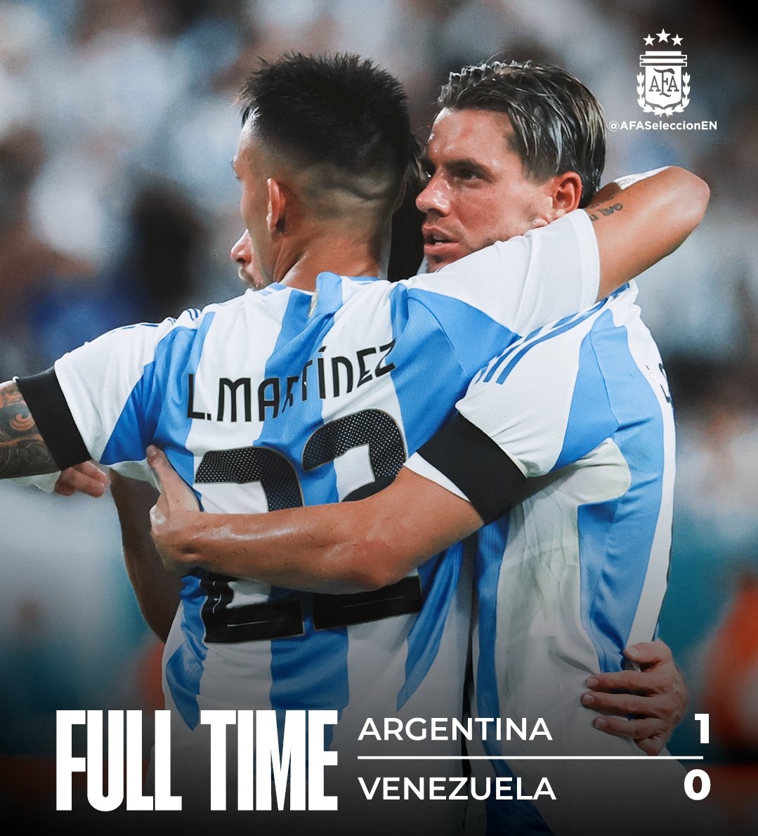 Argentina se impone 1-0 a Venezuela en el Hard Rock Stadium gracias al único gol de Giovani Lo Celso a la media hora de juego. La Albiceleste de Lionel Scaloni registró varias oportunidades para marcar en Florida, incluso Lautaro Martínez tuvo tres llegadas de peligro, pero la mala fortuna y el arquero José Contreras impidieron el festejo del Toro ante un rival que lastimó al campeón del mundo, pero no aprovechó su momento y se marcha al entretiempo con una derrota por la mínima.