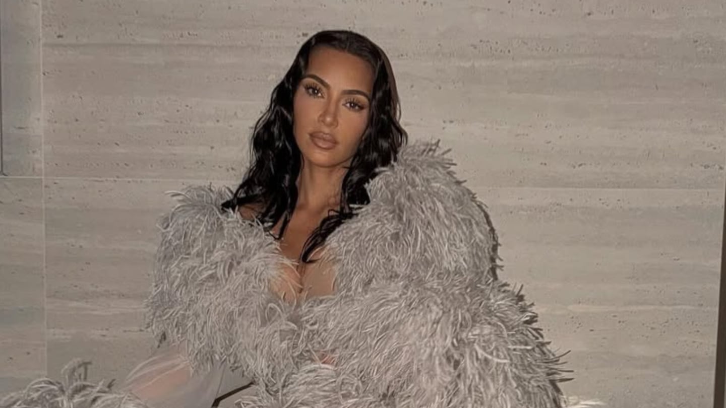 Kim Kardashian apostó por el dramatismo absoluto con un estilismo cargado de plumas que no pasó desapercibido. La empresaria lució un imponente tapado gris plateado completamente recubierto de plumas largas y voluminosas, que generan un efecto de movimiento y textura impactante.