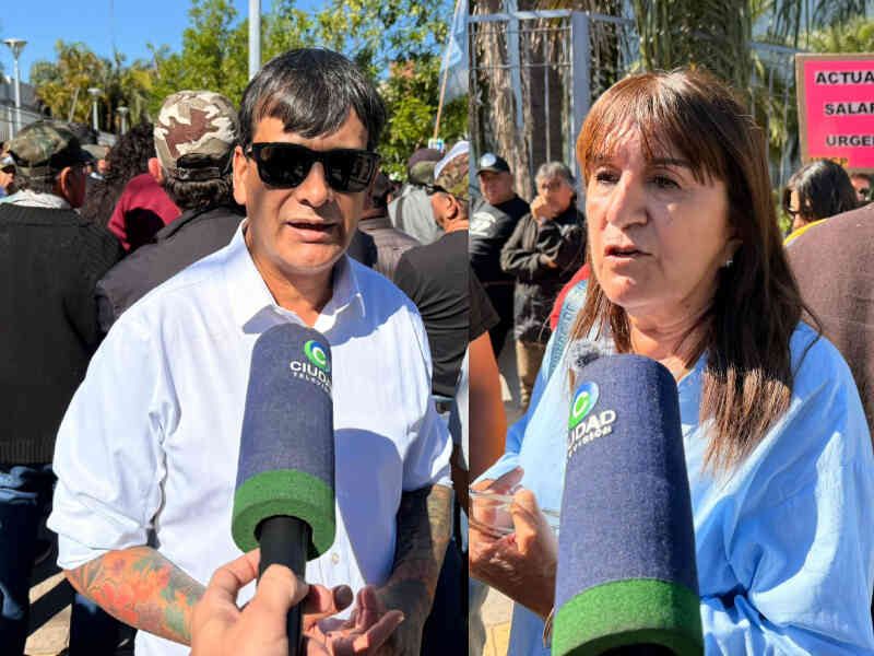 Fuera del Recinto, previo a que fracase esta convocatoria ante la falta de quórum por la ausencia de la diputada justicialista Andrea Charole, el móvil de CIUDAD TV dialogó con la secretaria General del gremio del InSSSeP, Zulema Coria, y el de la Unión Personal Civil de la Provincia (UPCP, José Niz, sobre los reclamos puntuales que llevaron este lunes al Parlamento chaqueño.
