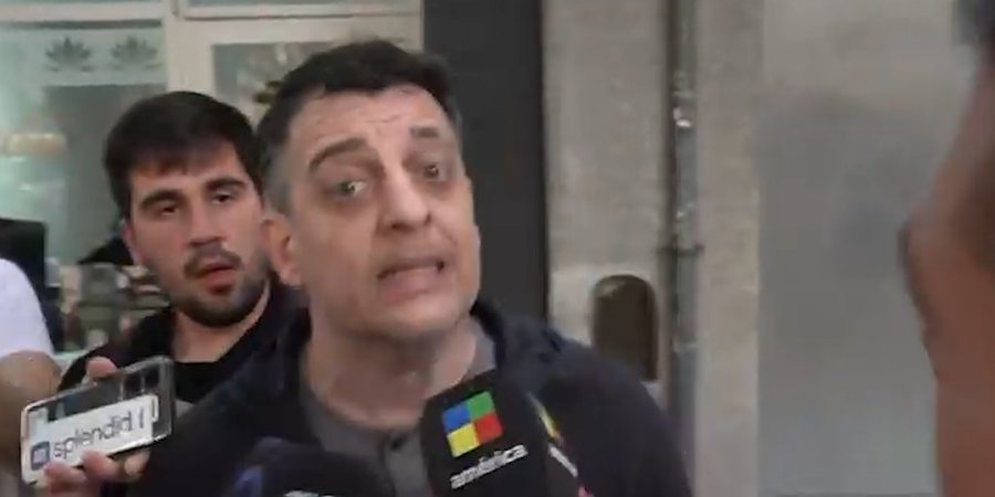 “La gente no lleva a fin de mes, Milei. Se te termina el circo y la bicicleta”, lanzó, mientras las preguntas sobre Lourdes y si la había visto últimamente no cesaban. “¿Qué denuncia te consta? ¿Ayer me denunciaron?“, siguió, para después comenzar a reírse y empezar a correr para que no continúen siguiéndolo mientras seguía sin dar respuestas.