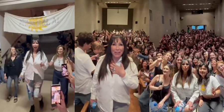 Sensibilizada, la diva no ocultó sus sensaciones. “Hola, gente. Bueno, voy a hacer uso de mi frase: ‘si querés llorar, llorá’. Estoy superemocionada”, expresó, mientras se largaba a llorar y los estudiantes coreaban su nombre. “No lo esperaba nunca, pero se me da este amor… No lo puedo creer, o sea, es impensable”, dijo, con la voz entrecortada.