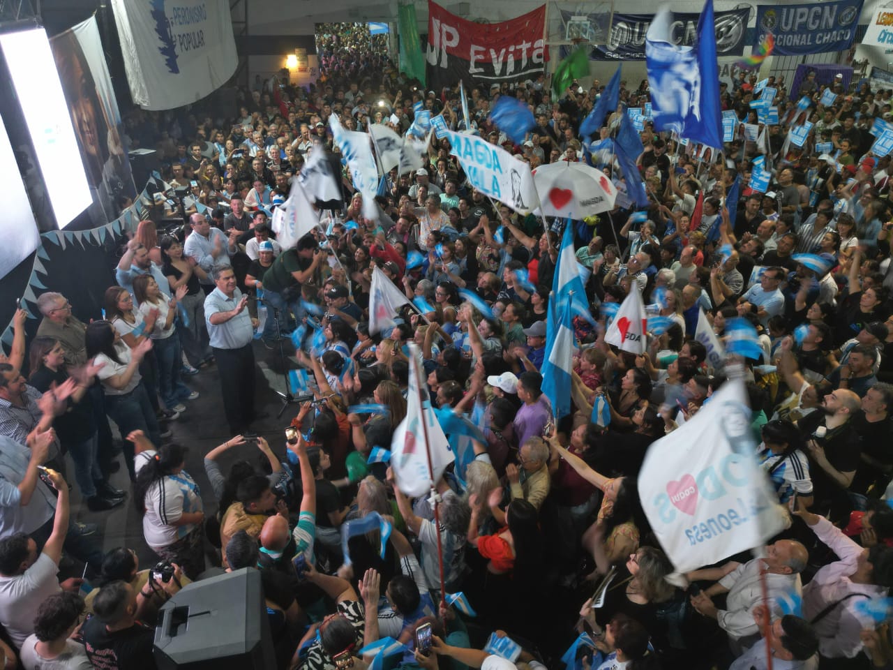 En un encendido y vibrante discurso, Capitanich llamó al pueblo a volcarse a las urnas y “con la bandera argentina, con la celeste y blanca en el corazón” ponerle un freno al modelo libertario de saqueo y entrega de la patria que encarnan Javier Milei y Leandro Zdero.