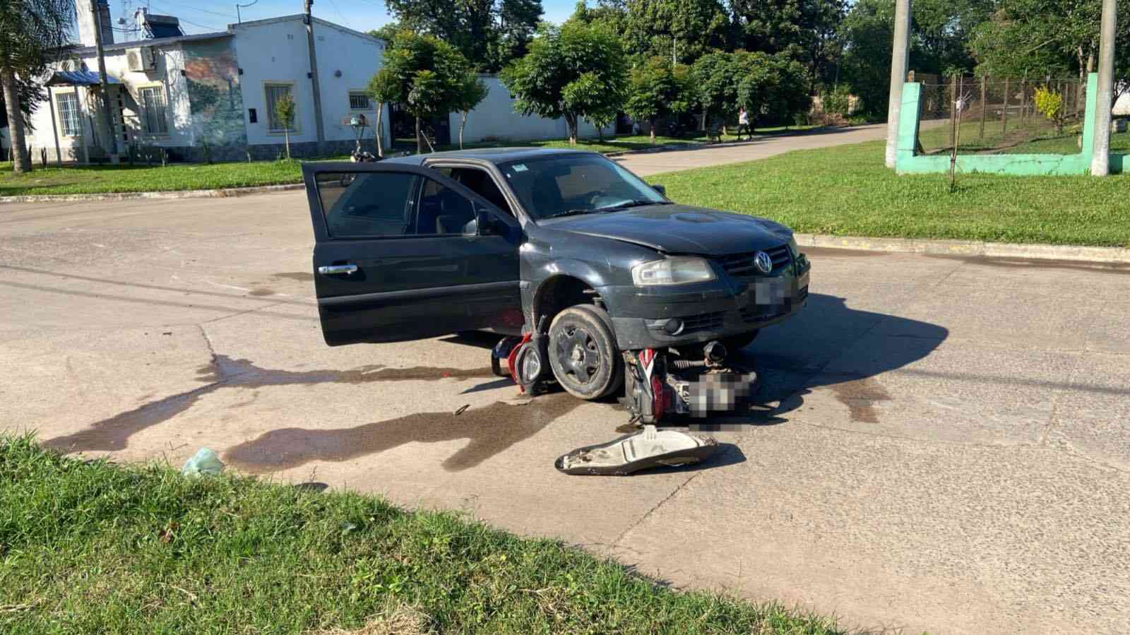 El vehículo mayor era conducido por una mujer de 37 años, mientras que la motocicleta era guiada por un hombre de 77 años, quien resultó lesionado. Según el informe médico del nosocomio local, el motociclista presentó escoriaciones en la región temporoparietal, en ambas muñecas y golpes en la zona lumbar, por lo que se le realizaron placas complementarias. La conductora del auto no presentó lesiones.