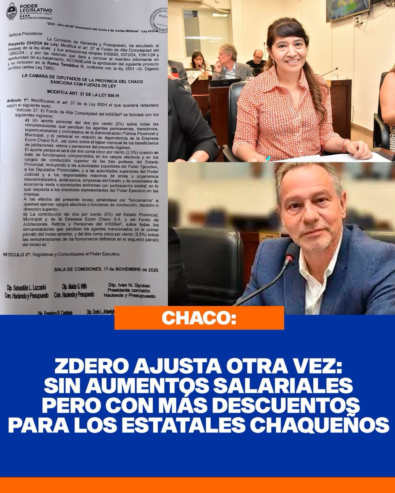 La gestión de Leandro Zdero volvió a golpear el bolsillo de los trabajadores estatales. Sin anuncios de aumentos, sin recomposición salarial y con sueldos que vienen perdiendo contra la inflación, el Gobierno provincial decidió avanzar y con votos propios en un nuevo descuento para los empleados públicos.