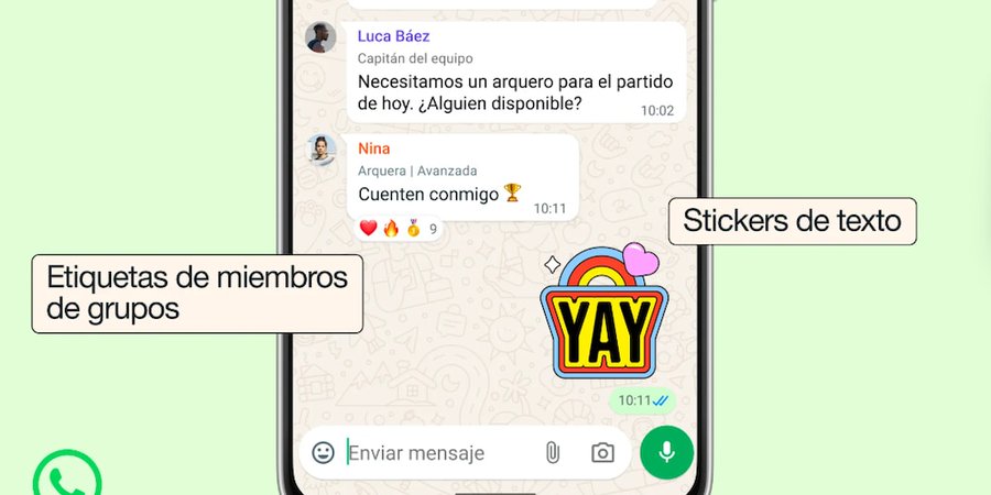 WhatsApp agrega funciones en los grupos: etiquetas de miembros, stickers de texto y más