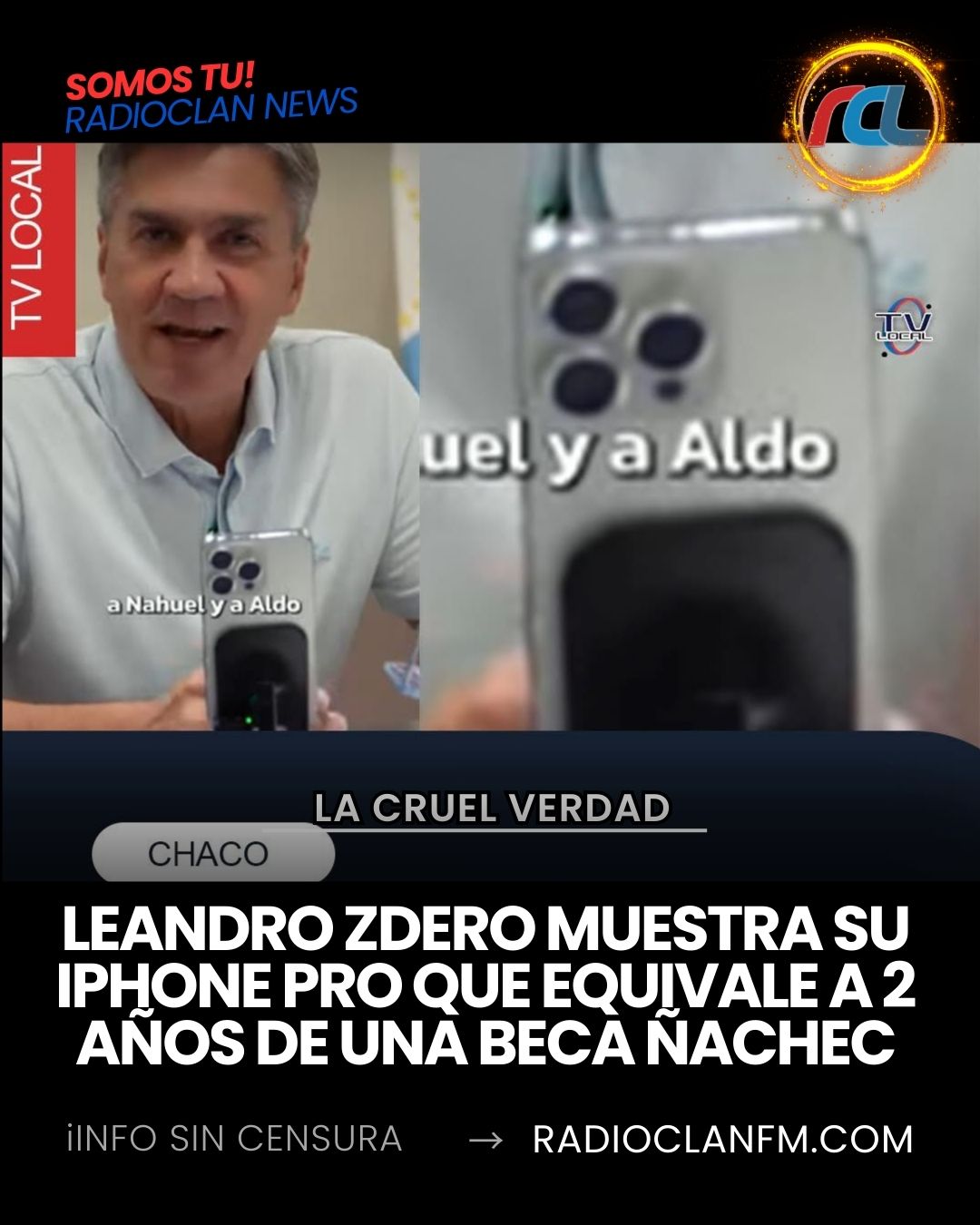 En la provincia del Chaco, la brecha entre quienes gobiernan y quienes viven de las políticas públicas se hace tangible en objetos cotidianos: el gobernador Leandro Zdero utiliza en su imagen pública un iPhone 16 Pro Max valuado en $3.600.000. Ese dato, por sí solo, no es menor: revela prioridades simbólicas y materiales en un contexto donde miles de chaqueños dependen de la beca Ñachec para llegar a fin de mes.