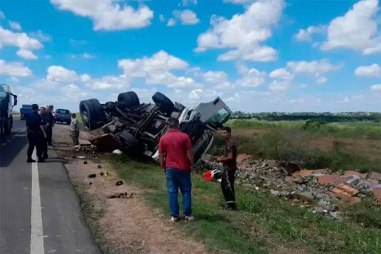 Tras la colisión, la camioneta utilitaria terminó detenida sobre la banquina, mientras que el camión quedó a pocos metros del punto donde se produjo el choque.