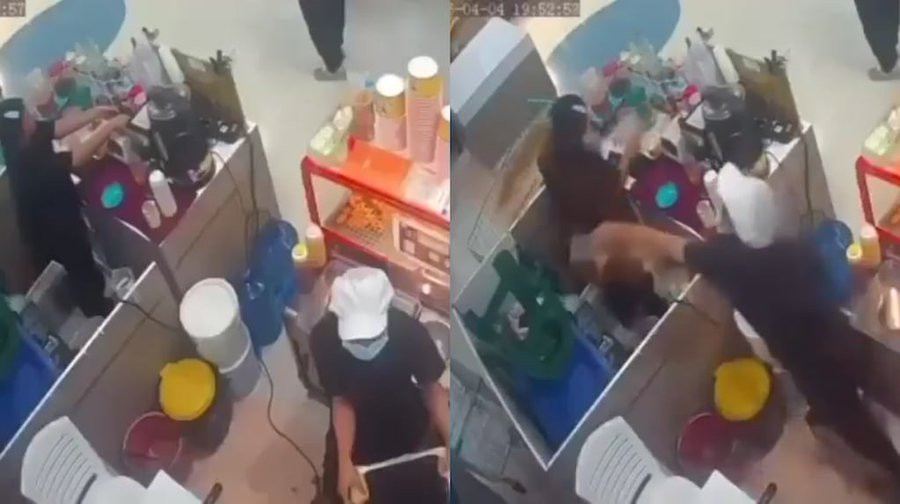 La víctima comenzó a gritar de forma desgarradora por el dolor y se cayó al piso, mientras su compañera salió corriendo para escapar de la escena. En ese momento, los demás colegas se acercaron desesperadamente a asistir a la joven, mientras que una persona que caminaba por el pasillo del restaurante logró retener a la agresora.