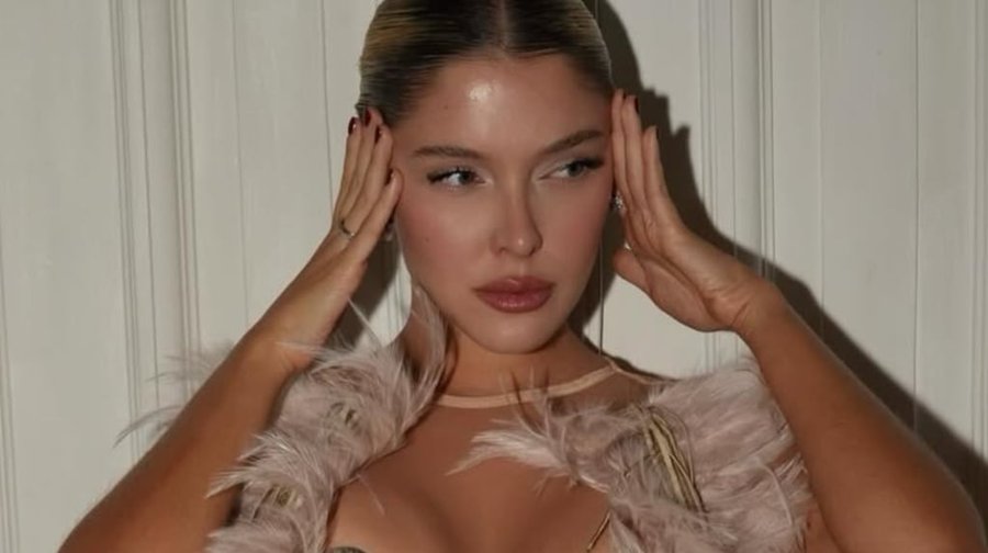 En la parte inferior, llevó una prenda de encaje en la misma paleta, acompañada por un detalle tipo cinturón con plumas y tiras finas que aportaron volumen y movimiento.