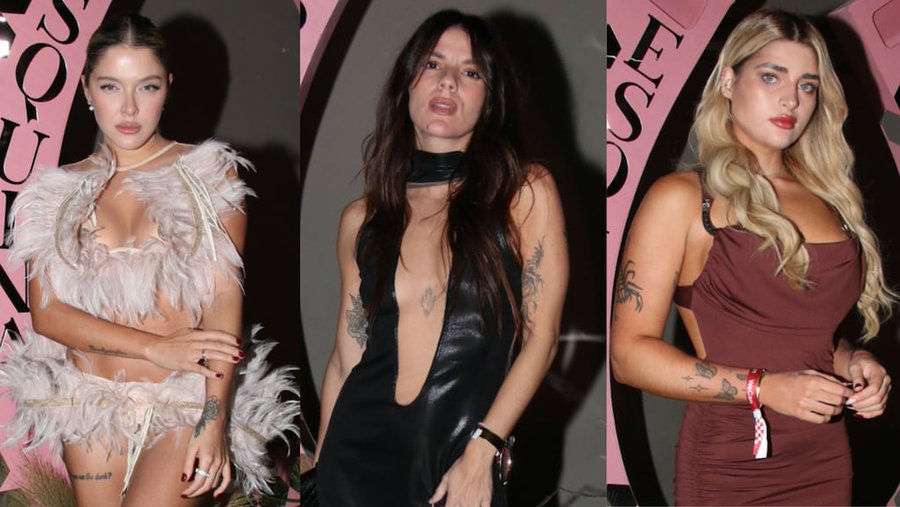 Sofía Gonet fue una de las más llamativas de la noche. Llevó un conjunto de lencería color crema adornado con apliques de plumas al tono, al mejor estilo look de carnaval. Uno stilettos clásicos a juego coronaron el vestuario.