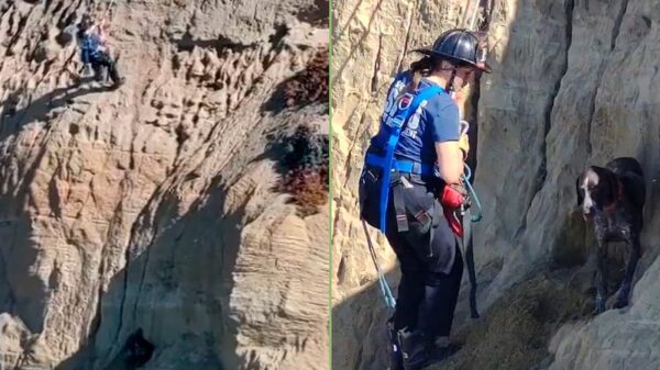 Las autoridades de San Francisco informaron que pudieron recuperar ilesa a la mascota, quien resbaló mientras jugaba con otro can Un perro de color...