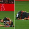 El lateral tuvo un dolor en el isquiotibial izquierdo y terminó en el suelo. Es la tercera vez que sufre molestias en esa zona...