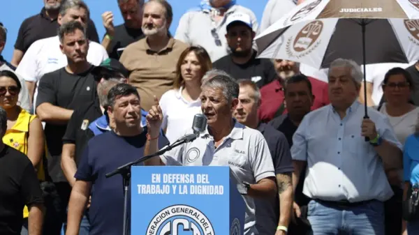 En una multitudinaria marcha a Plaza de Mayo contra la reforma laboral, la central evitó concretar el paro que piden las bases. “El 26...