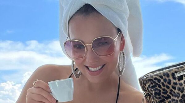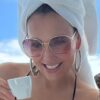 Se lució desde una playa paradisíaca con un traje de baño de dos piezas blanco y accesorios de lujo.