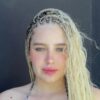 La exhermanita se fotografió al borde de la pileta con un traje de baño de dos piezas.