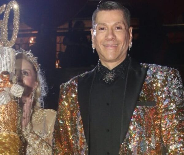 Eligió un vestido azul noche de paillettes firmado por Carla Ruiz y joyas Swarovski. Instalada en Madrid donde conduce con muchísimo éxito el Bailando...