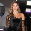 Se lució con un modelo de corset con lazos y falda con tajo en color borgoña, muy similar a uno rojo que había usado...