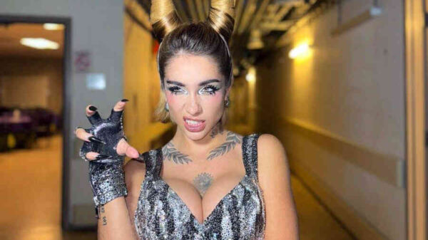 Se presentó en la apertura del evento de boxeo con un conjunto rosa de paillettes, alas con plumas y maquillaje con brillos. El Estadio...