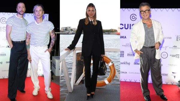Laurencio Adot, Donato de Santis, Adrián Brown y Angie Landaburu se lucieron con sus conjuntos navy en el crucero Sturla de Cuisine & Vins....