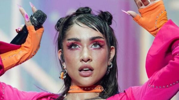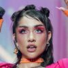 Para dar dos shows en Torrejón y Oropesa, España. eligió conjuntos Barbiecore con apliques de strass, guantes al tono y maquillaje a juego.