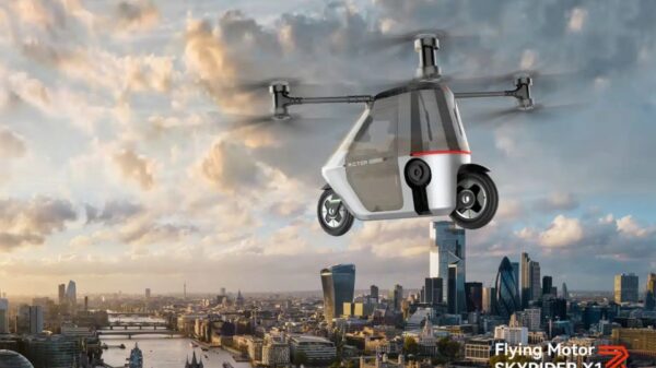 La interesante máquina de Rictor cuenta con un sistema de cuatro ejes y ocho hélices La Skyrider X1, promocionada como la «primera motocicleta voladora del...