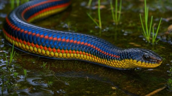 Con cuerpo robusto, tres líneas rojas en el lomo y un brillo azulado único, es una serpiente no venenosa cuya ausencia de registros desde...