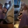 La chiquita caminó por los pasillos con el cubierto en la mano cuando su familia la perdió de vista. “Le voy a dar una...