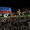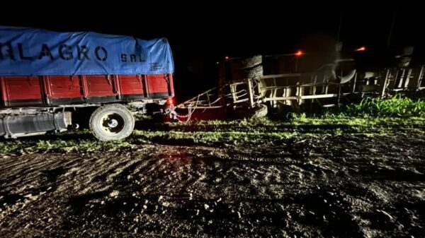 Impresionante choque entre un camión y una cosechadora sobre un puente en el kilómetro 198 de la Ruta 11, donde un camión cayó al...