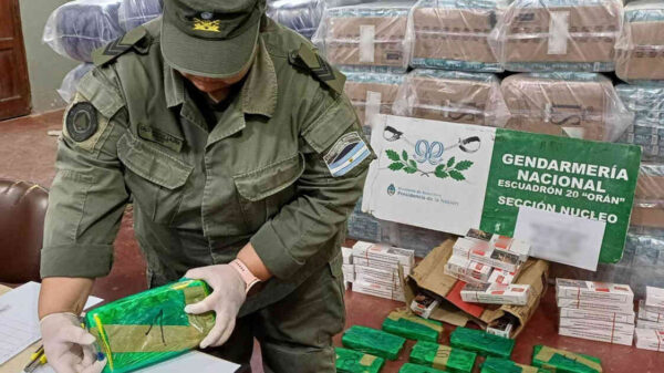 Los gendarmes, con el apoyo del can detector de narcóticos “Mambo”, detectaron la presencia de la sustancia al momento de controlar la bodega de...