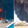 El siniestro se produjo en piletones con material inflamable de la empresa Indarsa, generó una densa columna de humo negro visible desde varios kilómetros...