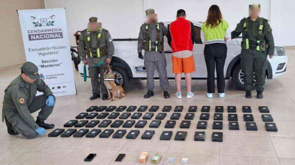 Un hombre y una mujer quedaron detenidos por transportar el estupefaciente, el cual estaba distribuido en 57 paquetes rectangulares. Efectivos de la Secciones “Montero” y “Núcleo” dependientes del Escuadrón...