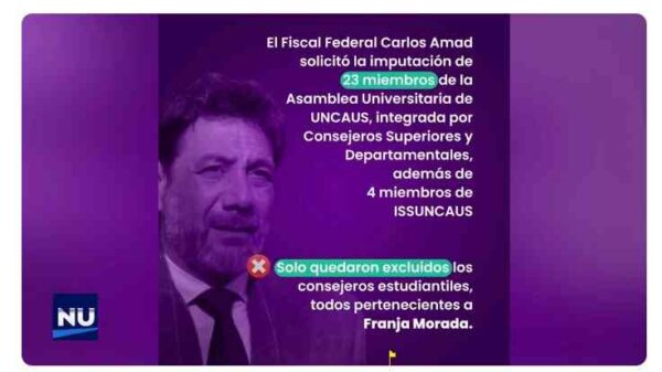 Docentes de la Universidad Nacional del Chaco Austral presentaron una demanda por difamación y perjuicio contra la agrupación estudiantil Franja Morada, tras la difusión...