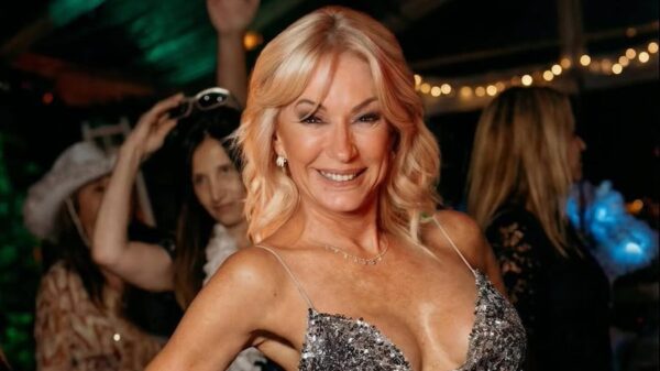 Recibió a sus amigas con un modelo largo de lentejuelas doradas y para la tanda de baile lo cambió por uno corto plateado. Yanina...