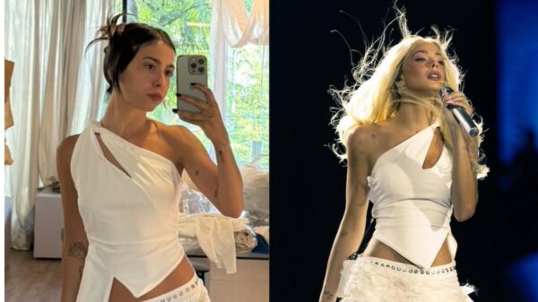 En su rol como diseñadora de la marca Hotel Estudio, creó uno de los vestuarios que usó la cantante durante su show en Chile....