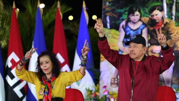 Visiblemente demacrado, de gorra azul y vistiendo su tradicional chaqueta roja, el líder del régimen estuvo acompañado de su esposa Rosario Murillo en un...