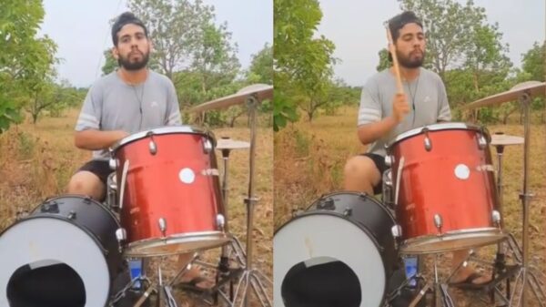 Video: lo denunciaron por ruidos molestos, se fue a tocar la bateria al monte y se hizo viral