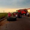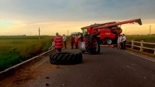 Impresionante choque entre un camión y una cosechadora sobre un puente en el kilómetro 198 de la Ruta 11, donde un camión cayó al...