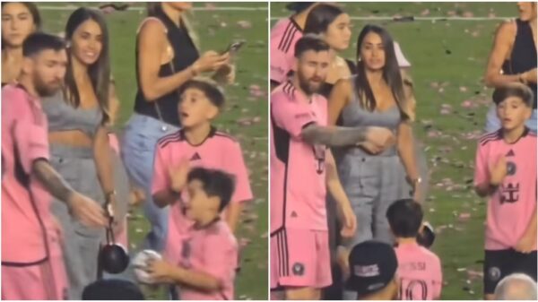 El crack argentino cumplió con su rol de papá en el césped del Chase Stadium y el video se volvió viral.