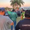 Impresionante choque entre un camión y una cosechadora sobre un puente en el kilómetro 198 de la Ruta 11, donde un camión cayó al...